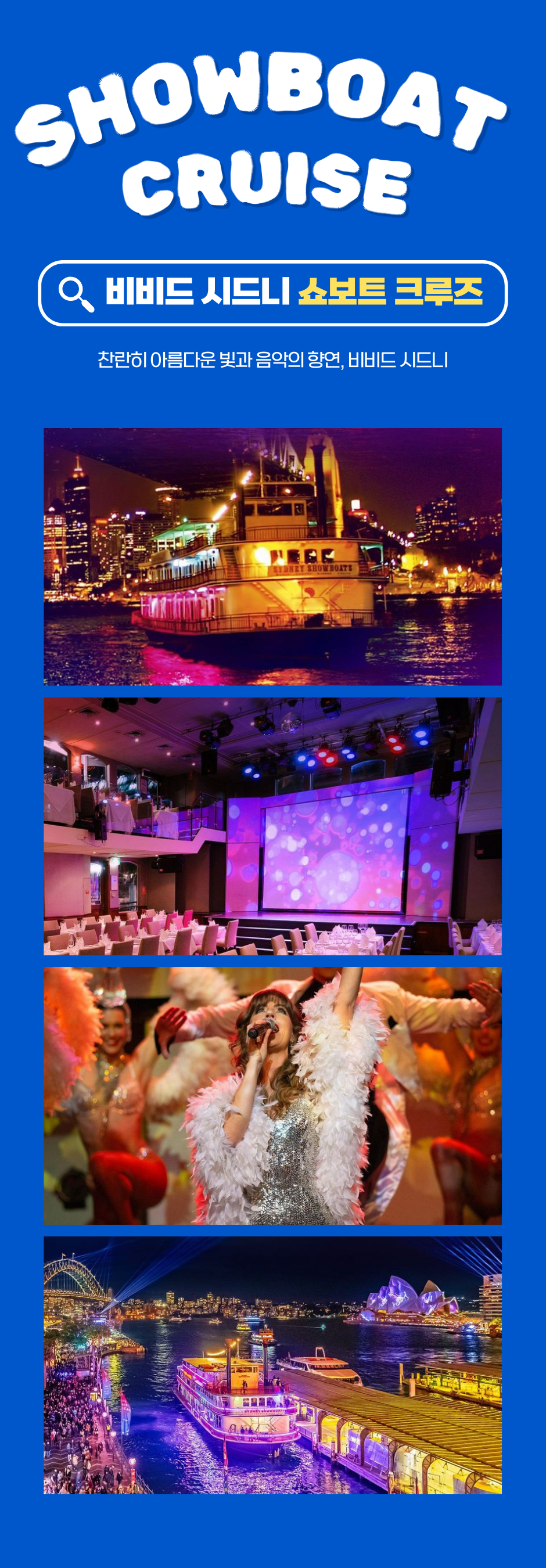 ✅2시간 30분 디럭스 다이닝 & 라이브 엔터테인먼트가 포함된 비비드 라이트 크루즈