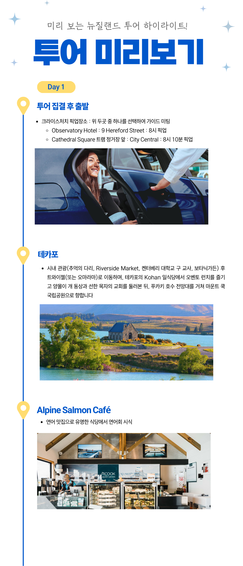 크라이스트처치에 투어 출발일(화요일) 이전에 도착해 계신 분만 참여 가능