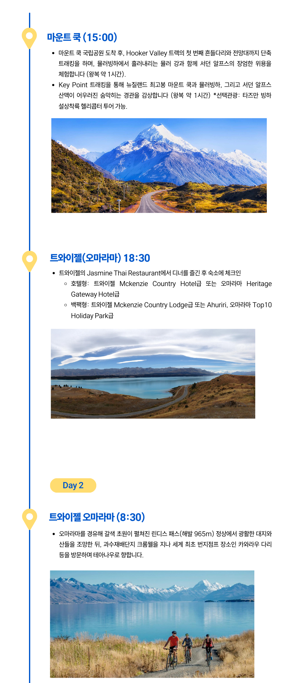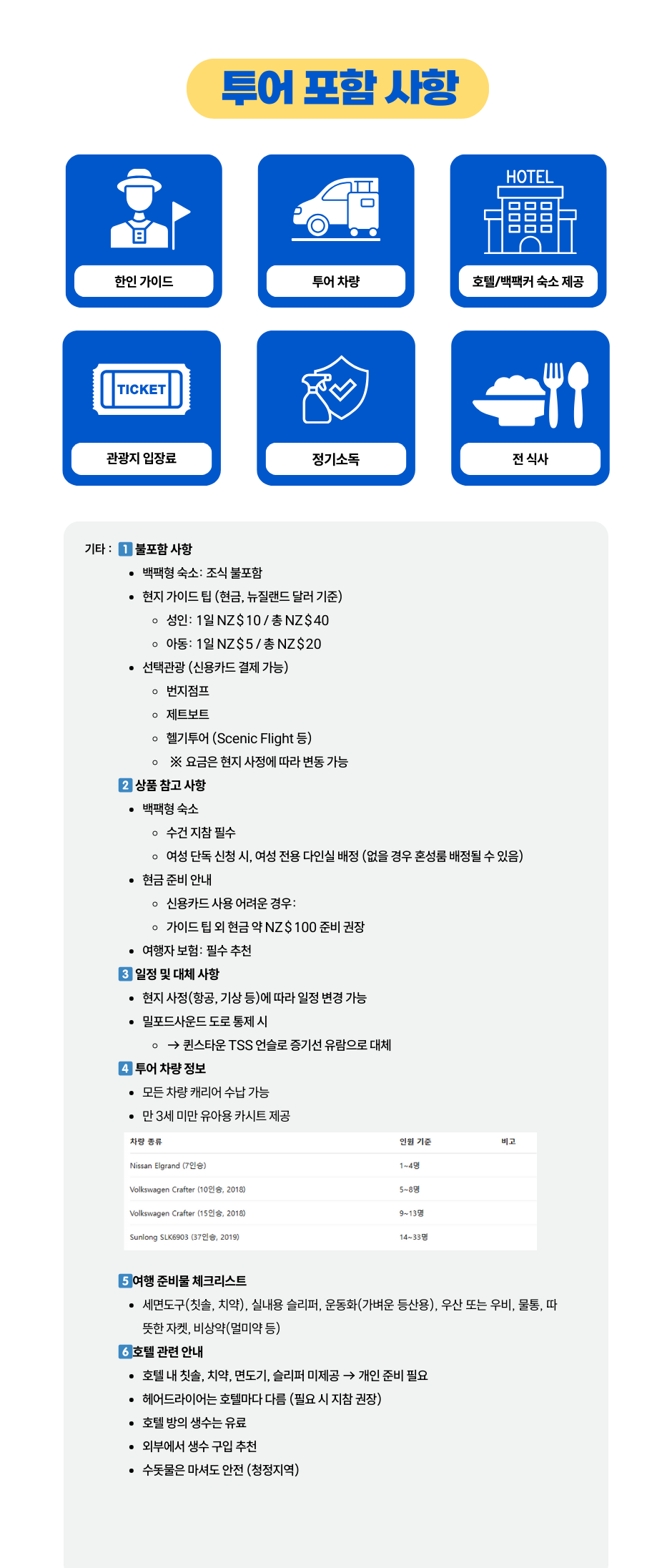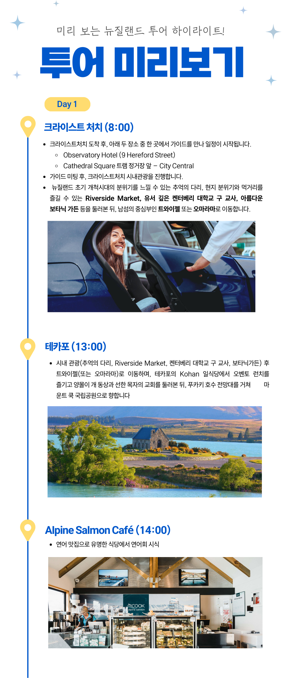 투어종료 후 토요일 오후 5시45분 이 후 크라이스트처치 출발