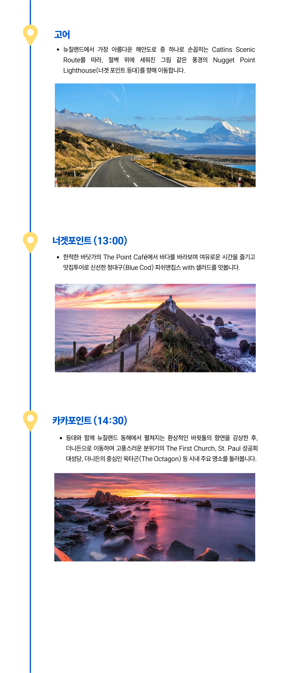 뉴질랜드 남섬 여행의 가장 아름다운 동부 해안가 Catlins 로 떠나는 4박5일 간의 편안한 여정 입니다.