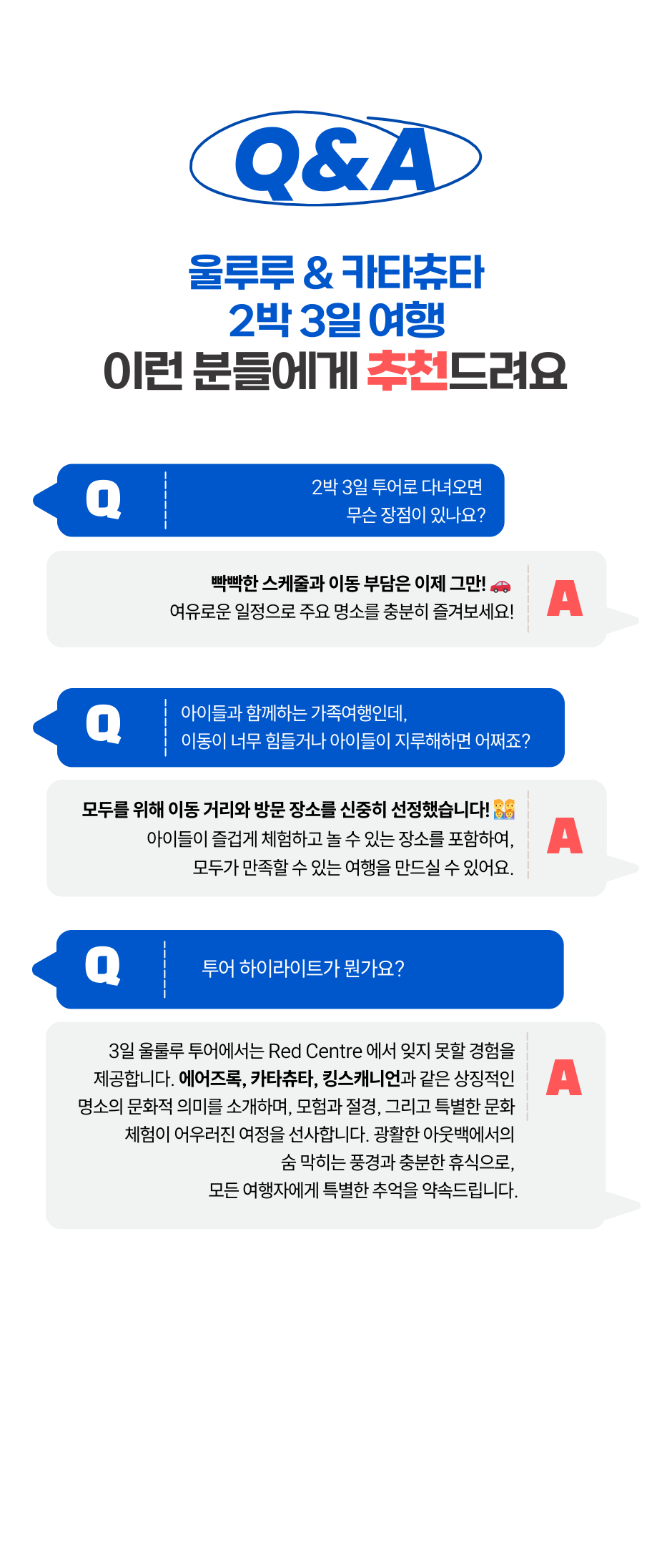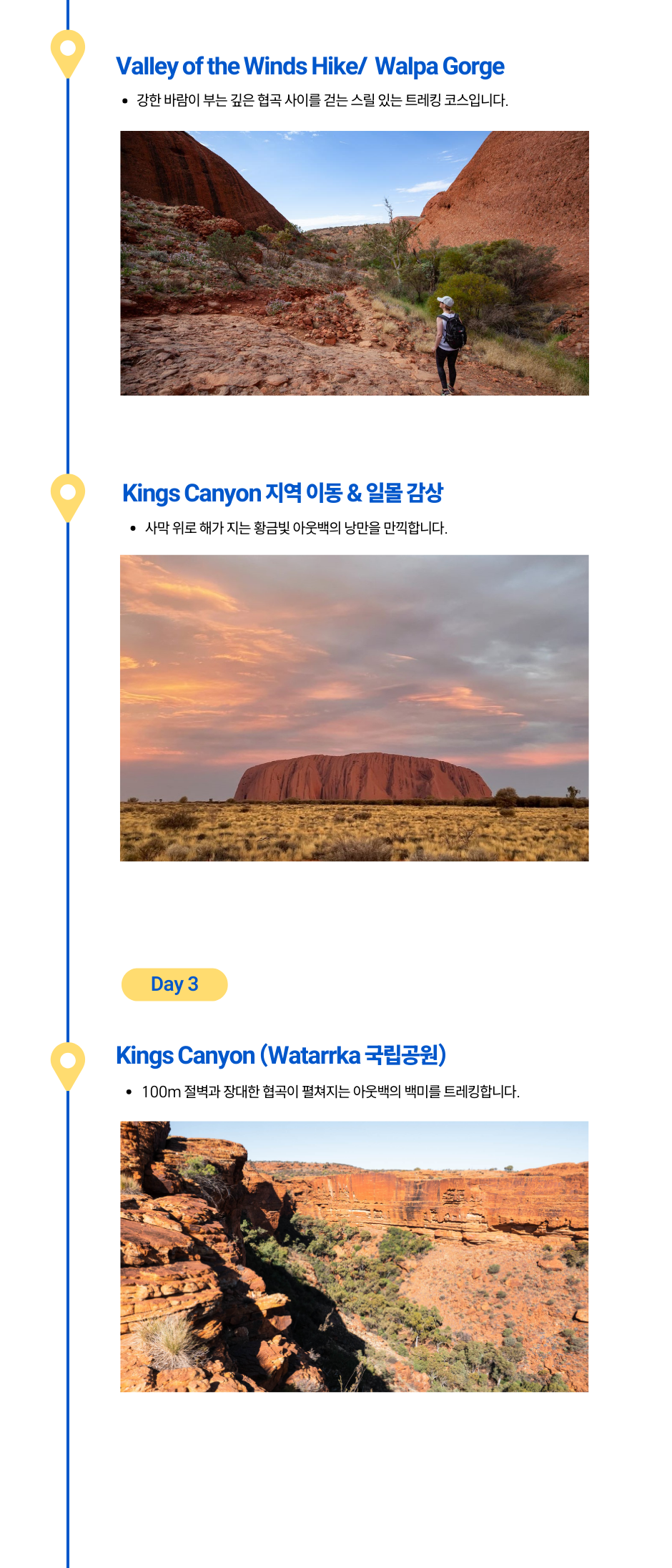 호주의 붉은 심장부, **레드 센터(Red Centre)**의 상징적인 명소들을 단 3일 동안 효율적으로 탐험해보세요.