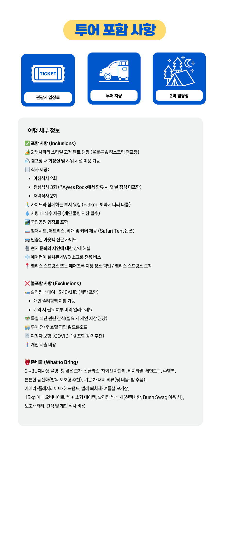 기간: 3일 2박 (2 Nights Camping)