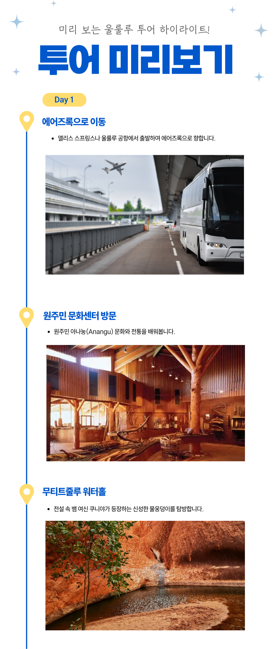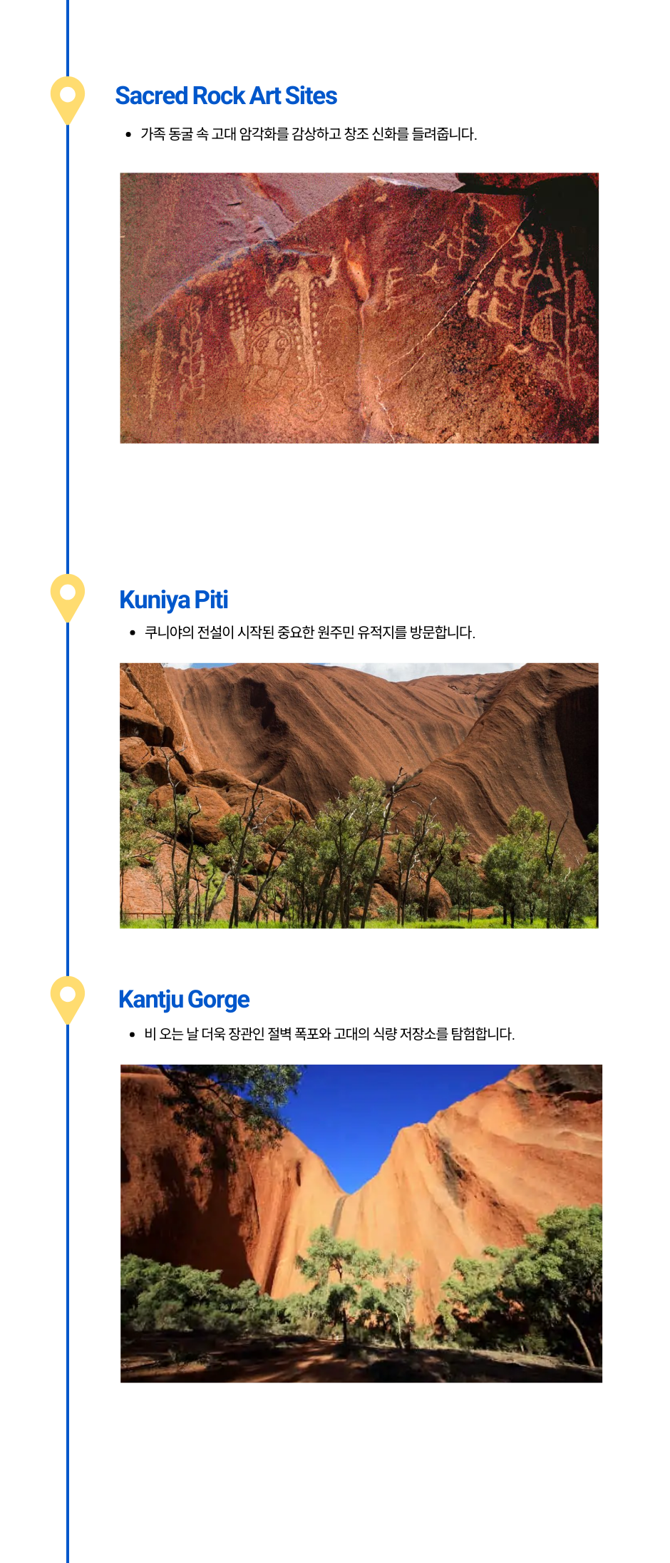 울룰루, 카타츄타, 킹스캐니언의 문화적 의미와 자연의 경이로움을 전문 가이드와 함께 깊이 있게 경험할 수 있습니다.