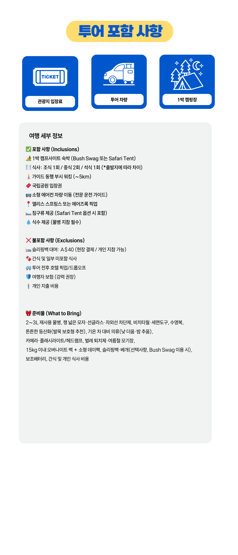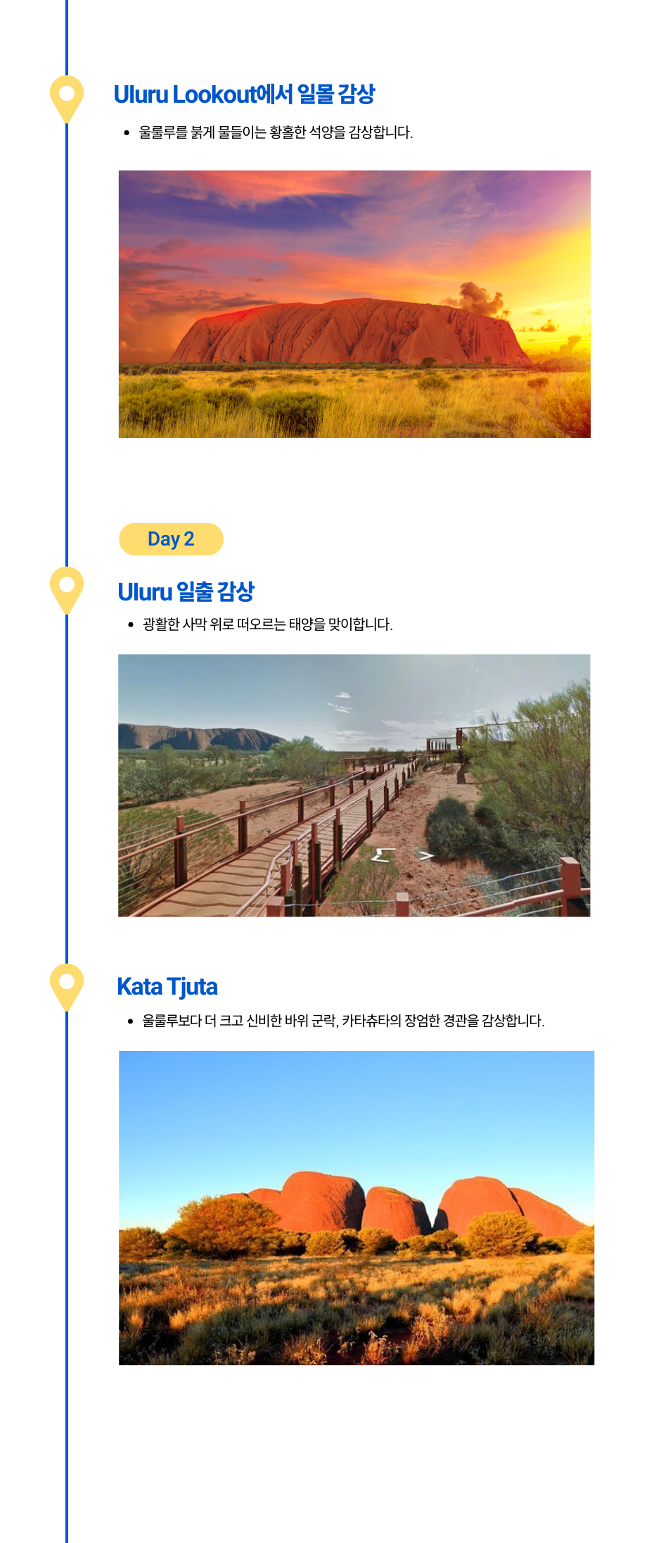 호주의 아웃백, 레드 센터의 상징적인 자연과 문화유산을 경험할 수 있는 완벽한 2일 여행! 울룰루와 카타츄타의 장엄한 풍경, 원주민 문화, 세계자연유산 국립공원을 전문 가이드와 함께 깊이 있게 만나보세요.