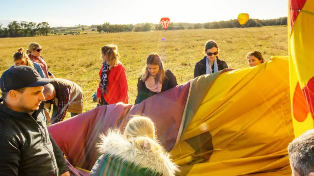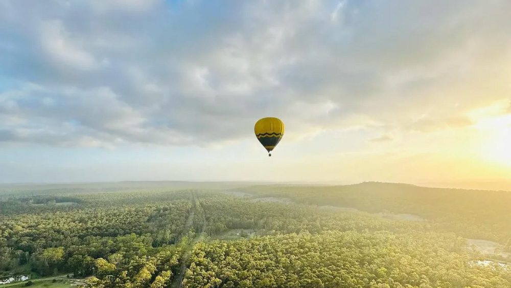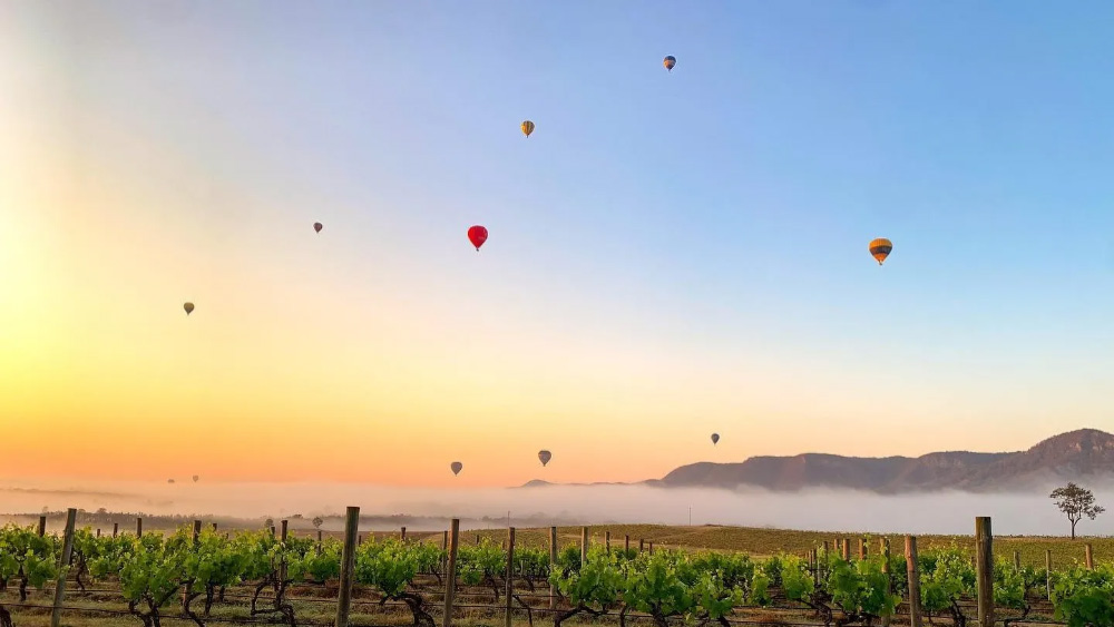 헌터 밸리의 드넓은 와인 산지 위로 떠오르는 일출을 감상하며 특별한 열기구 비행을 경험해 보세요.